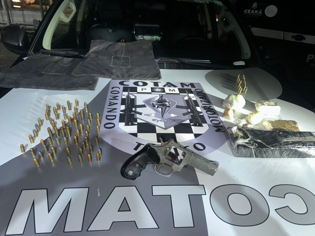 FORTALEZA/CE – Uma ação relâmpago do Comando Tático Motorizado (Cotam) da Polícia Militar desmantelou, na noite do último sábado (11), um ponto de tráfico escondido em mangue no bairro Edson Queiroz, resultando na apreensão de um revólver calibre .38, 80 munições e mais de 1,2 kg de entorpecentes.
