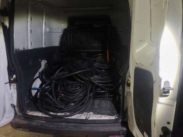 Ao abrir o compartimento de carga foram encontrados outros três ocupantes — dois homens de 24 anos e um de 31 anos — e a grande quantidade de fios de alta tensão.