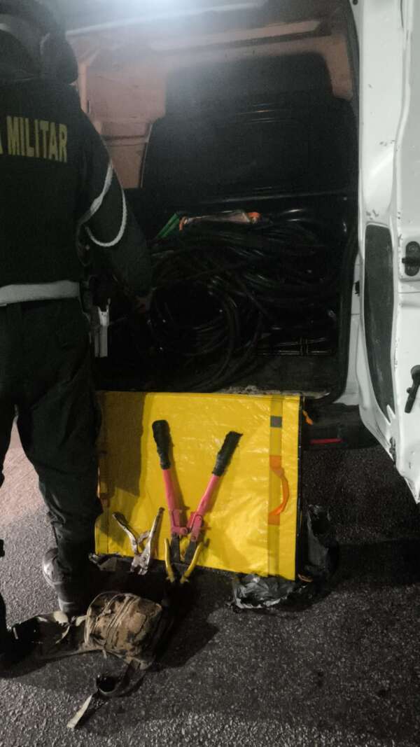 Na ocasião, foram encontrados mais três suspeitos, além de uma grande quantidade de fios de alta tensão, totalizando 300 kg do material, e um alicate industrial.