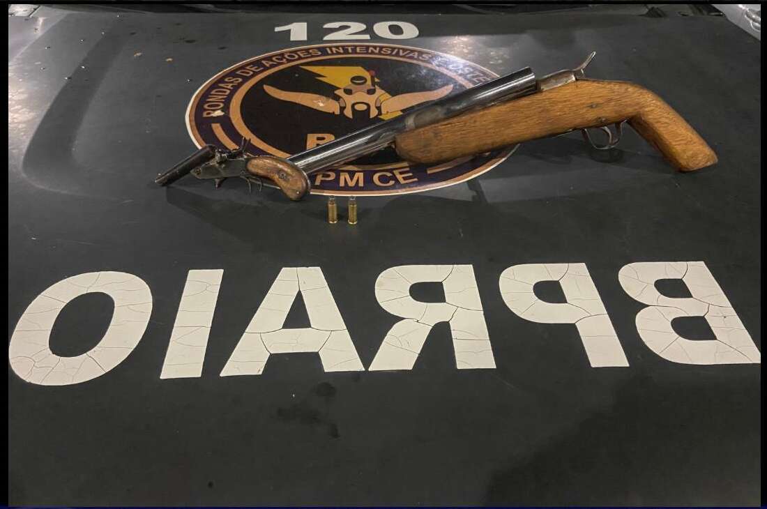 Armas apreendidas em Juazeiro do Norte – Na noite de quarta-feira (7), equipes do 5º Batalhão de Rondas de Ações Intensivas e Ostensivas (BPRaio) da Polícia Militar do Ceará detiveram dois homens e recolheram duas armas artesanais nos bairros Brejo Seco e Betolândia, no município do Cariri.