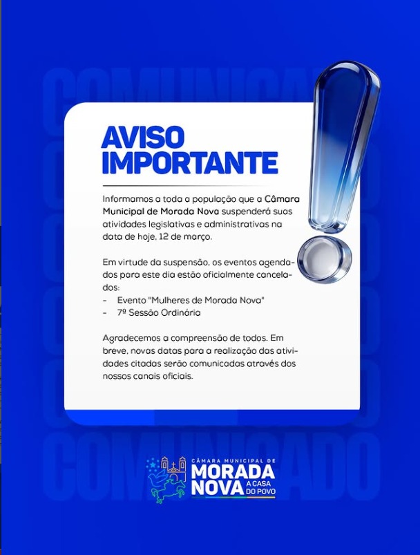 “Em breve, novas datas serão comunicadas através dos nossos canais oficiais”, informou o comunicado divulgado nas redes sociais da Câmara.