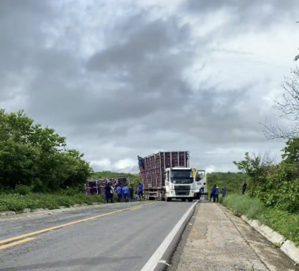 - Em resumo: Condutor perdeu o controle e o caminhão tombou fora da pista; aves precisaram ser realocadas rapidamente.