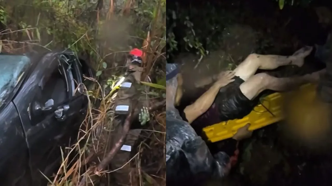 Carro cai em ribanceira em Barbalha e deixa ferido na Chapada