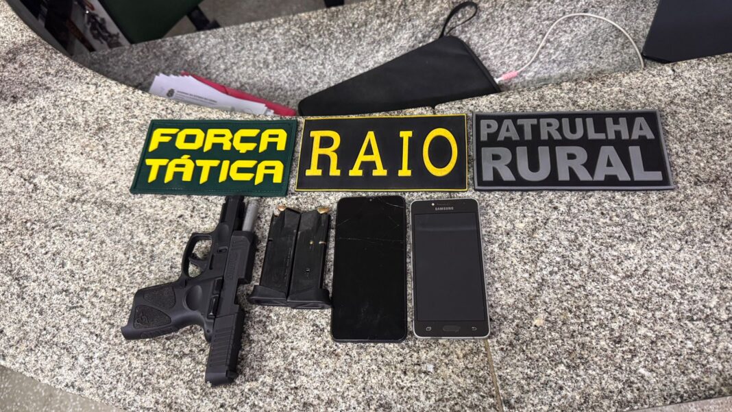 Com o apoio de equipes da Força Tática e do policiamento rural, os agentes localizaram os suspeitos poucos minutos depois. Ainda no local, ambos confessaram a autoria do homicídio, permitindo a apreensão dos materiais que estavam dentro da residência.