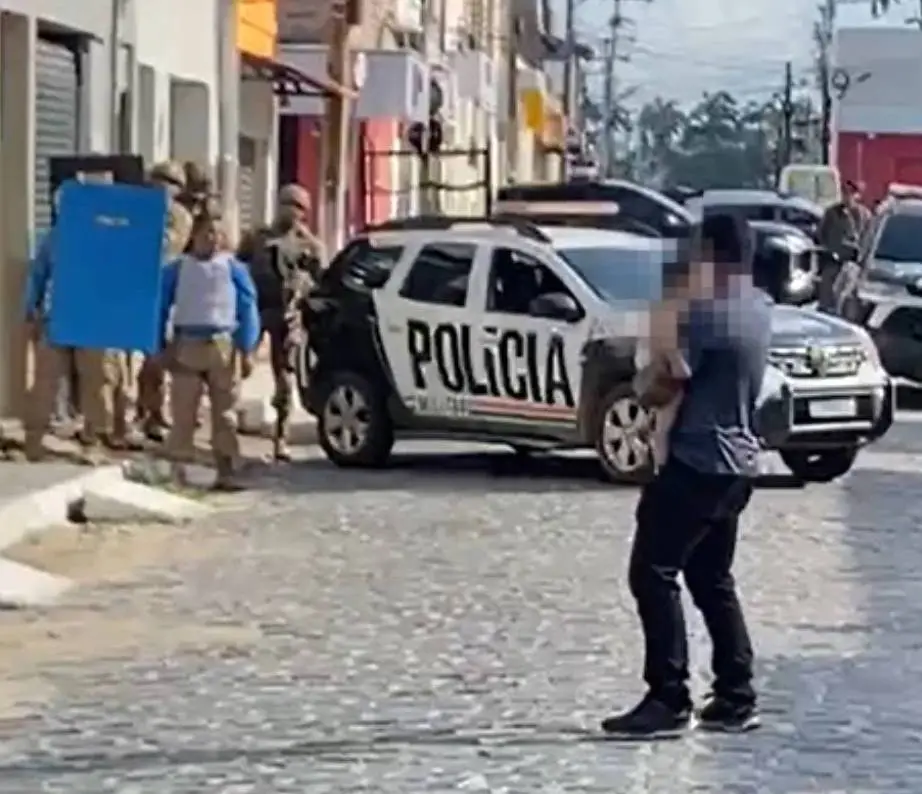 Em determinado momento das negociações, o homem saiu para o meio da rua com o bebê no colo, cercado por policiais. Após intervenção, o suspeito foi contido e a criança retirada em segurança.