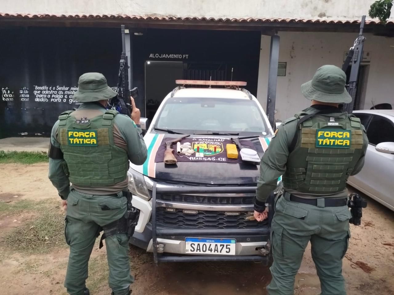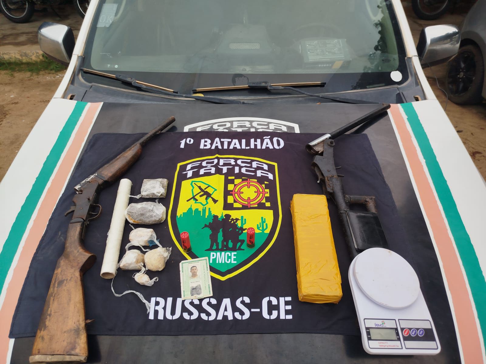Moradores desconfiaram da circulação armada e acionaram o 181, o Disque-Denúncia. Quando a viatura se aproximou, o homem escapou pelos fundos, mas deixou para trás as duas armas calibre 12, duas munições, cerca de 1 kg de maconha e 148 g de crack. Todo o material foi levado à Delegacia Regional de Russas para os trâmites legais.