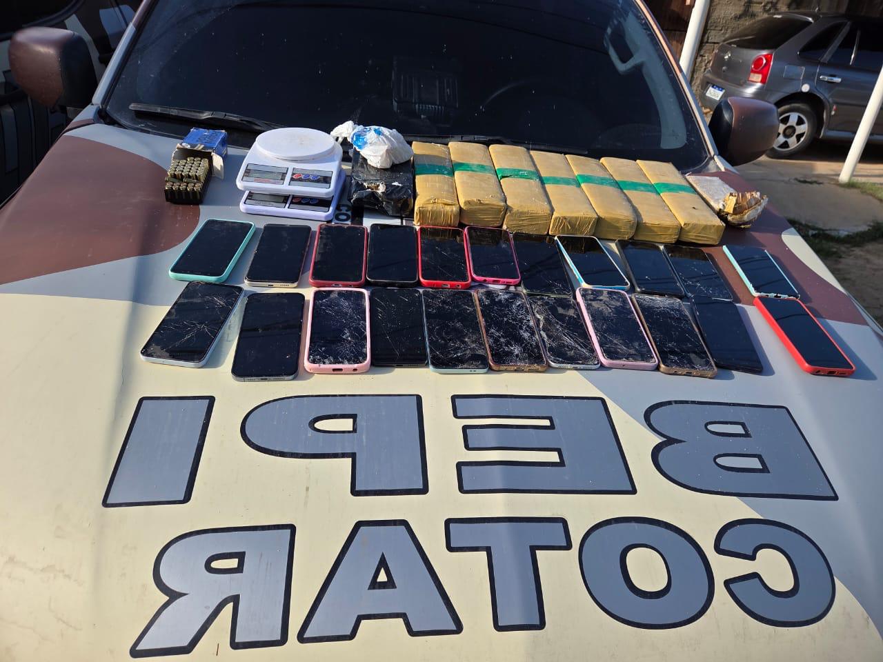 COTAR cerca casa em Russas e acha 22 celulares e 8 kg de drogas