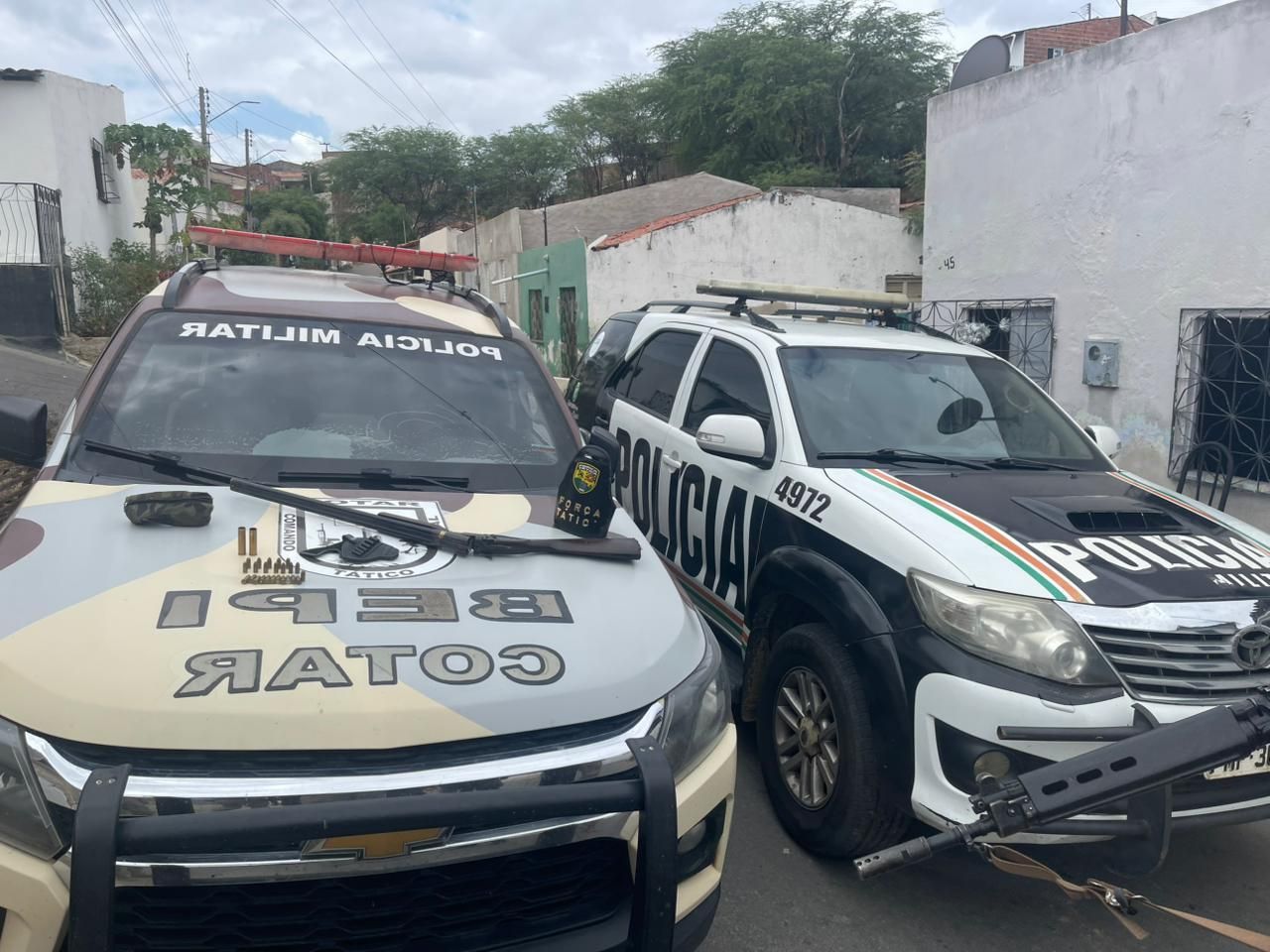 O flagrante ocorreu depois que a corporação recebeu imagens que mostravam suspeitos exibindo armas na Rua Padre Paulo de Almeida Medeiros.