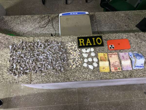 Alertados por denúncias anônimas sobre movimentação intensa de usuários, os raianos patrulharam ruas estreitas da periferia e localizaram o jovem em comportamento suspeito. Mesmo após a tentativa de fuga, os policiais apreenderam 240 g de maconha, 55 g de cocaína, 65 pacotes de crack, um celular e cédulas que indicam giro rápido de caixa.