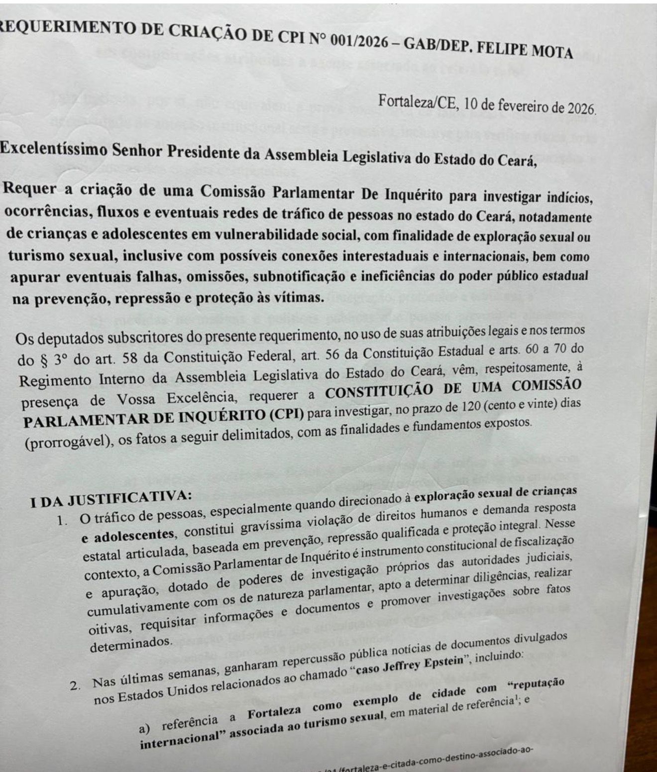 Fortaleza/CE – Um pacote de documentos do Departamento de Justiça dos Estados Unidos, revelado recentemente, menciona Fortaleza e as praias de Morro Branco e Canoa Quebrada em trocas de e-mails entre Jeffrey Epstein e o agente de modelos Jean-Luc Brunel. O deputado estadual Felipe Mota (União Brasil) reagiu de imediato e vai protocolar uma CPI na Assembleia Legislativa para rastrear possíveis aliciadores que ainda atuem no Ceará.