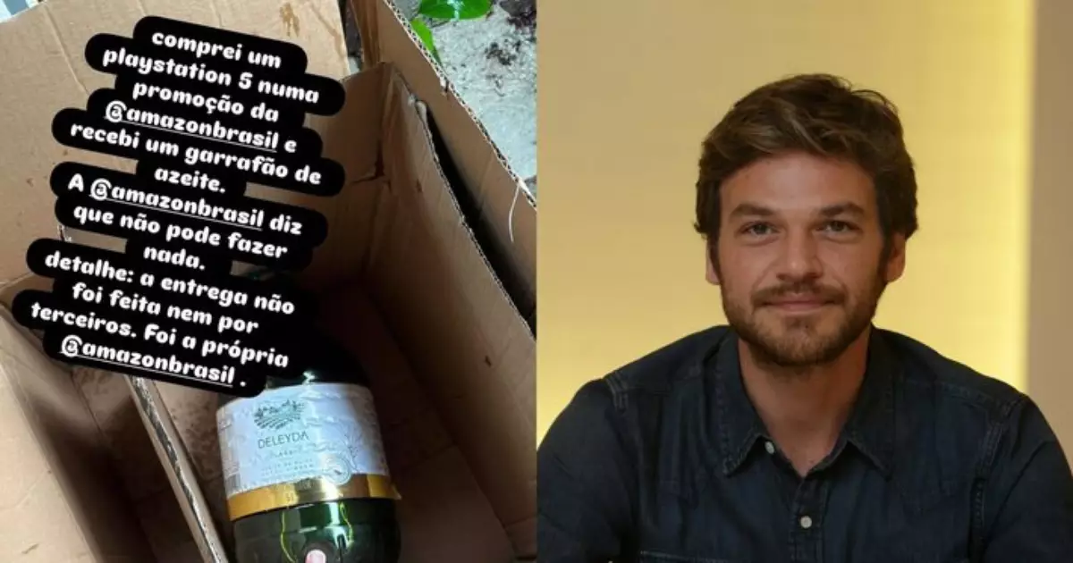 Emilio Dantas relata golpe na Amazon: recebeu azeite no PS5 – O ator afirma que, ao comprar um PlayStation 5 na plataforma de e-commerce, recebeu em casa duas garrafas de azeite extravirgem no lugar do console.