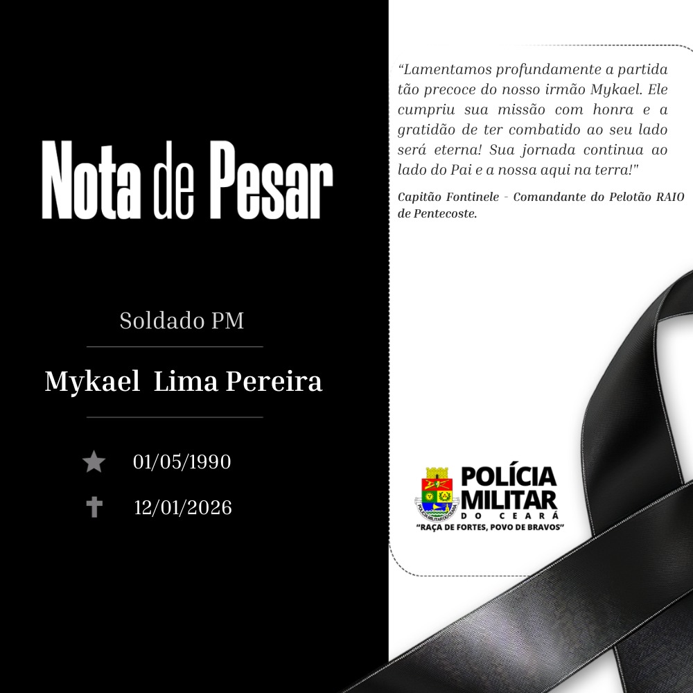 No encerramento da nota, a PMCE reiterou solidariedade e colocou toda a estrutura da corporação à disposição da família.