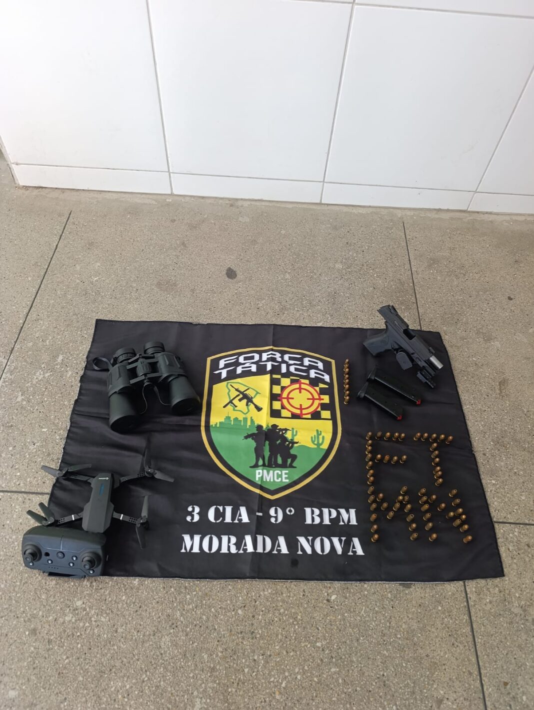 Morada Nova/CE – Uma operação rápida da Polícia Militar do Ceará (PMCE) culminou, no último domingo (25), na prisão de um foragido de 23 anos que era procurado por homicídio. Na residência do suspeito, os agentes apreenderam uma pistola calibre .380, 66 munições, três carregadores e um drone que pode ter sido usado para monitorar ações policiais.