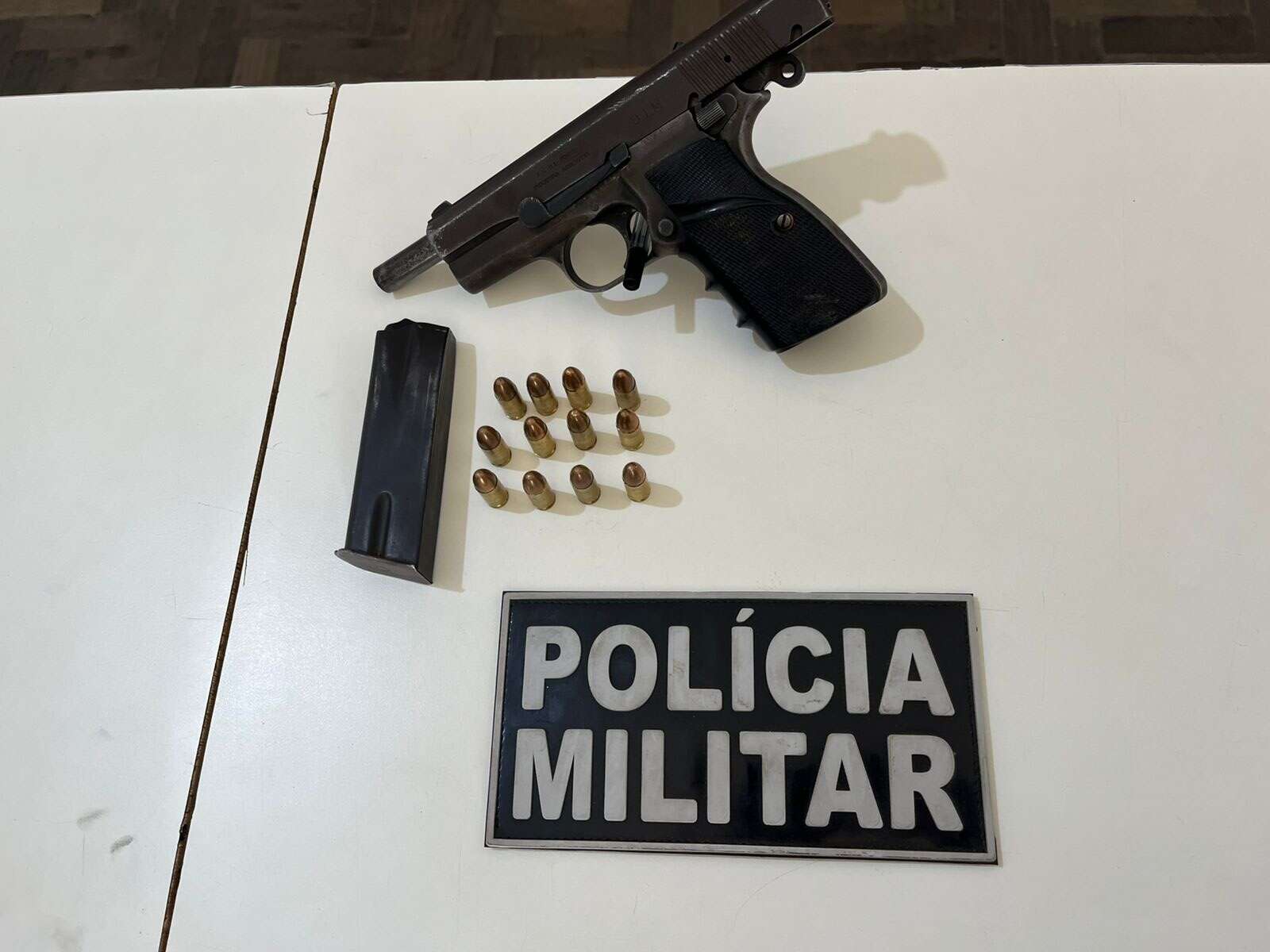 Com ele, os agentes apreenderam uma pistola 9 mm carregada com 12 munições, além de um celular e a motocicleta usada na fuga.