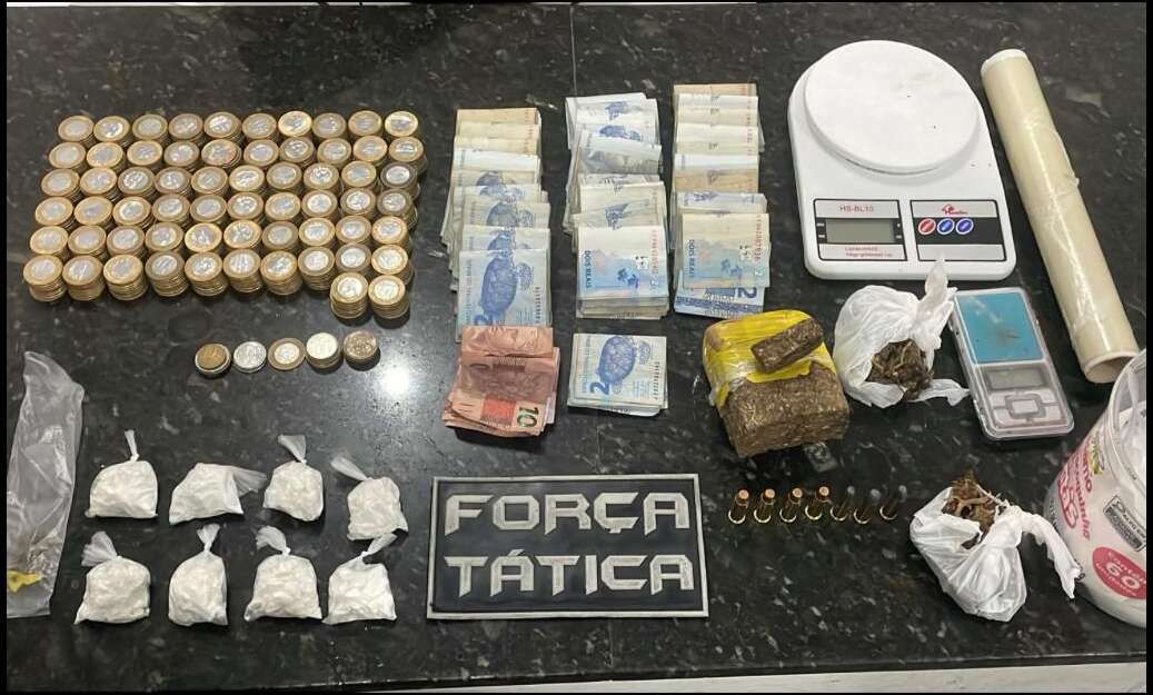 Os militares patrulhavam a região quando foram acionados pela Coordenadoria Integrada de Operações de Segurança (Ciops). A denúncia relatava suspeitos armados e com drogas no imóvel. Chegando ao local, não havia pessoas, mas toda a mercadoria ilícita estava espalhada pela sala, pronta para venda, segundo os policiais.