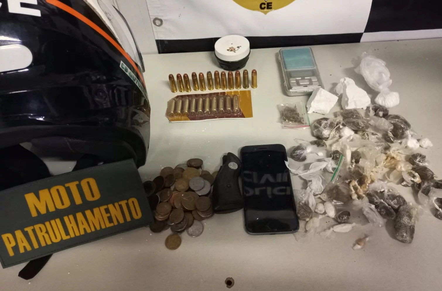 - Em resumo: homem fugiu, mas deixou 91 g de cocaína, 52 g de maconha, crack e 22 munições calibre .38 dentro de casa.