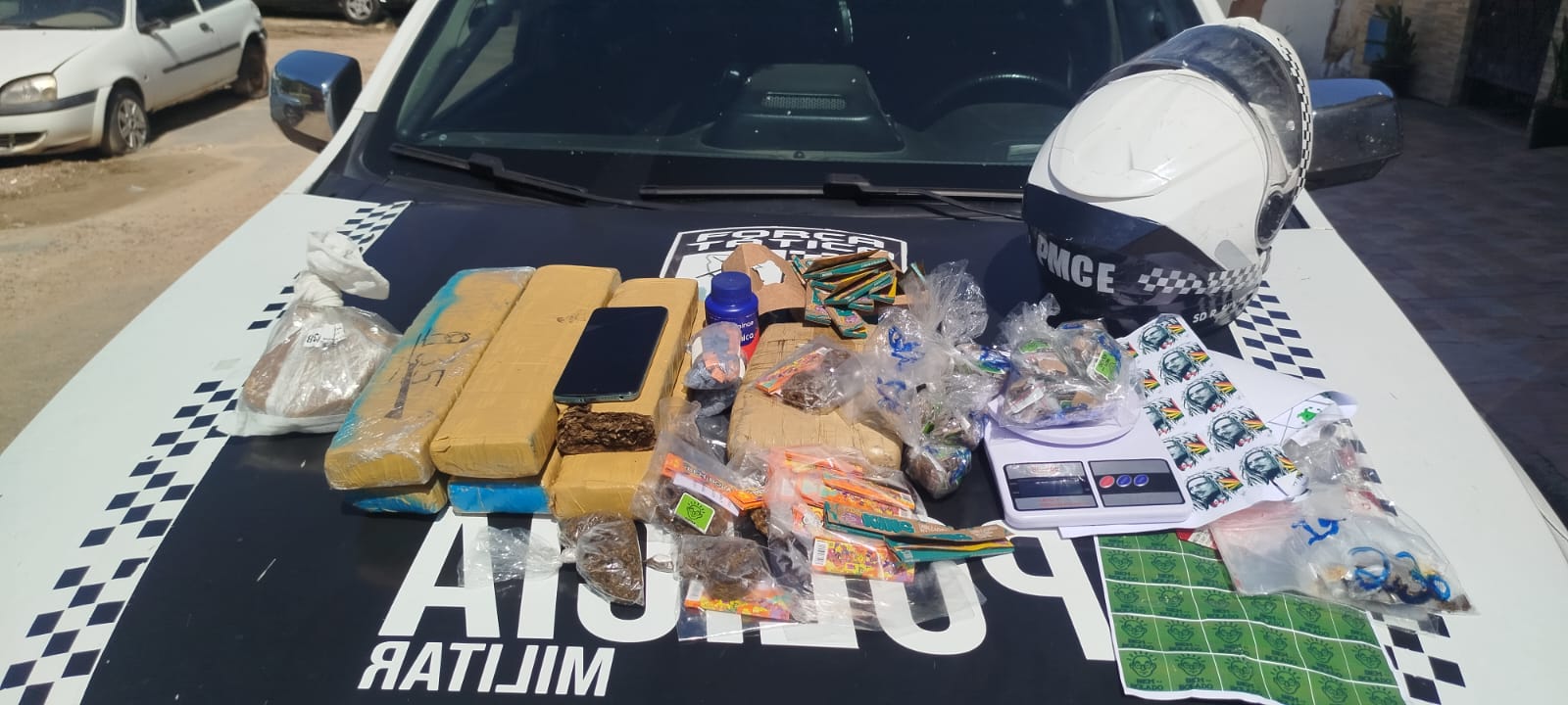 Ao notar a aproximação, o suspeito – que se encaixava na descrição repassada – correu para dentro do imóvel, pulou muros e desapareceu. Dentro da casa, os militares encontraram 6,3 kg de maconha, 610 g de crack, 107 comprimidos de ecstasy/MDMA, balança de precisão, papéis de seda e sacos plásticos. Todo o material seguiu para o 32º Distrito Policial.