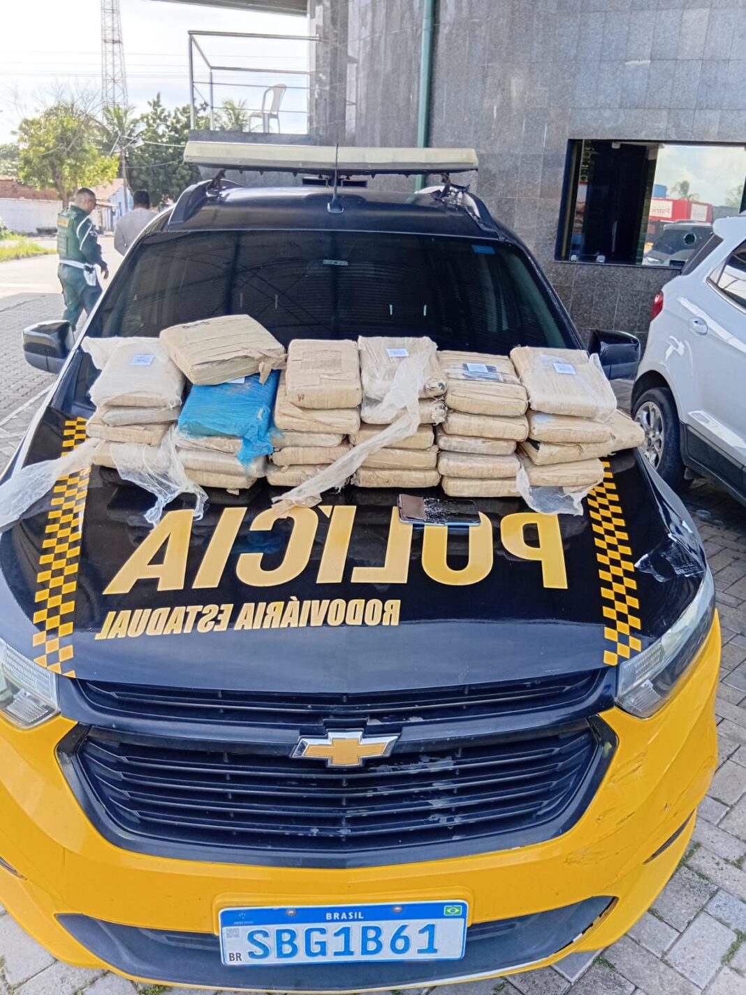 Segundo a equipe, o veículo mudou de pista ao avistar o bloqueio. A atitude acionou o acompanhamento tático, encerrado 300 m depois. Na revista pessoal, nada foi encontrado, mas o interior do carro revelava outro cenário: três bolsas lotadas de skank, somando 35 kg da droga, além de um celular danificado e o próprio automóvel, que tinha queixa de roubo.