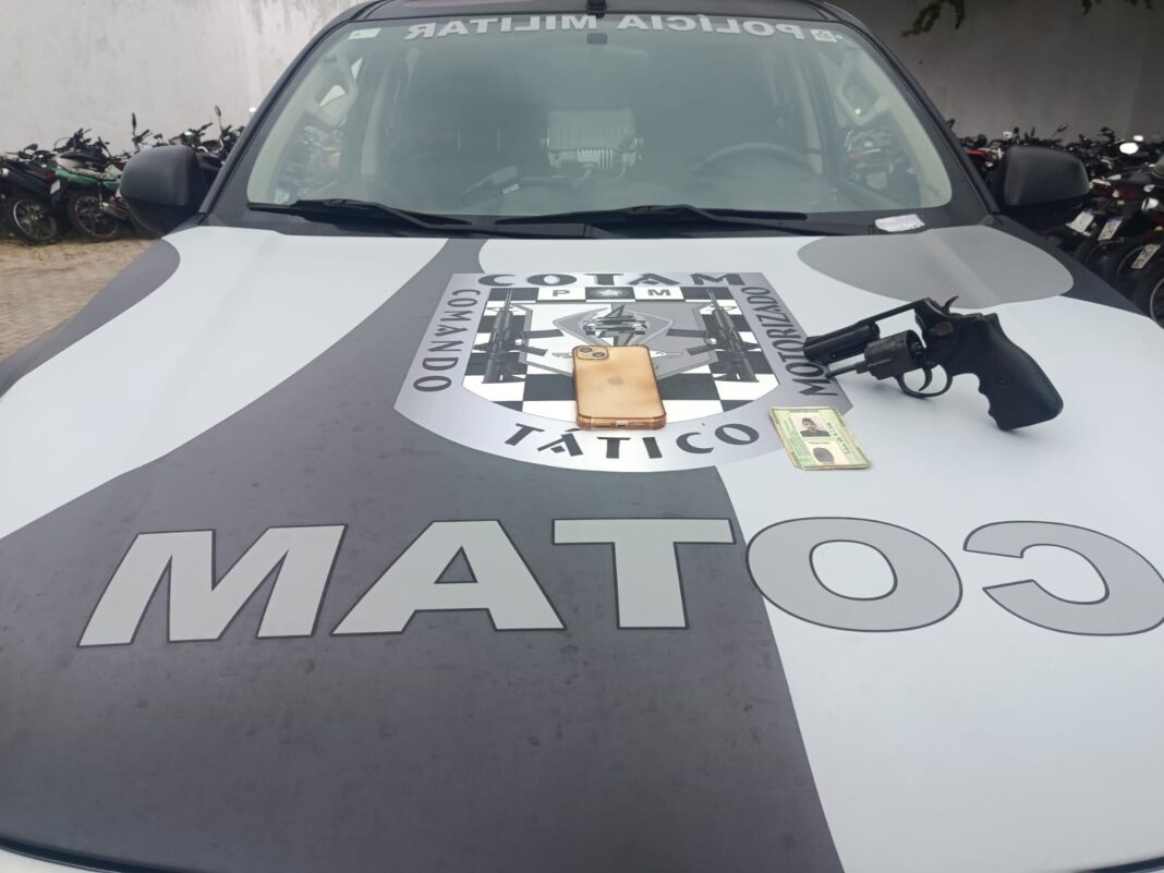 FORTALEZA/CE – Na tarde do último domingo (5 de abril de 2026), uma patrulha do Comando Tático Motorizado da Polícia Militar do Ceará surpreendeu um jovem de 25 anos que corria armado entre as ruas do Conjunto Habitacional Miguel Arraes, no bairro Siqueira. A rápida reação evitou que o revólver, abandonado pelo suspeito durante a fuga, permanecesse em circulação.