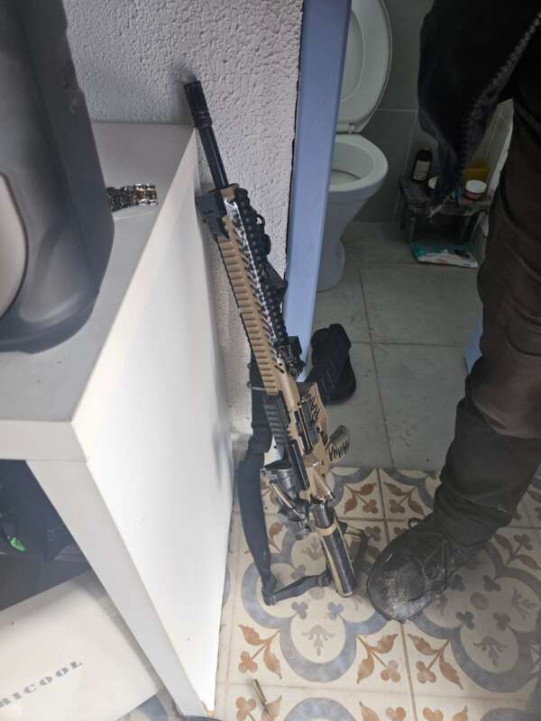 “No local, foram apreendidos um fuzil 556, uma granada, uma pistola 9 mm e diversas munições”, destaca o relatório da ocorrência.