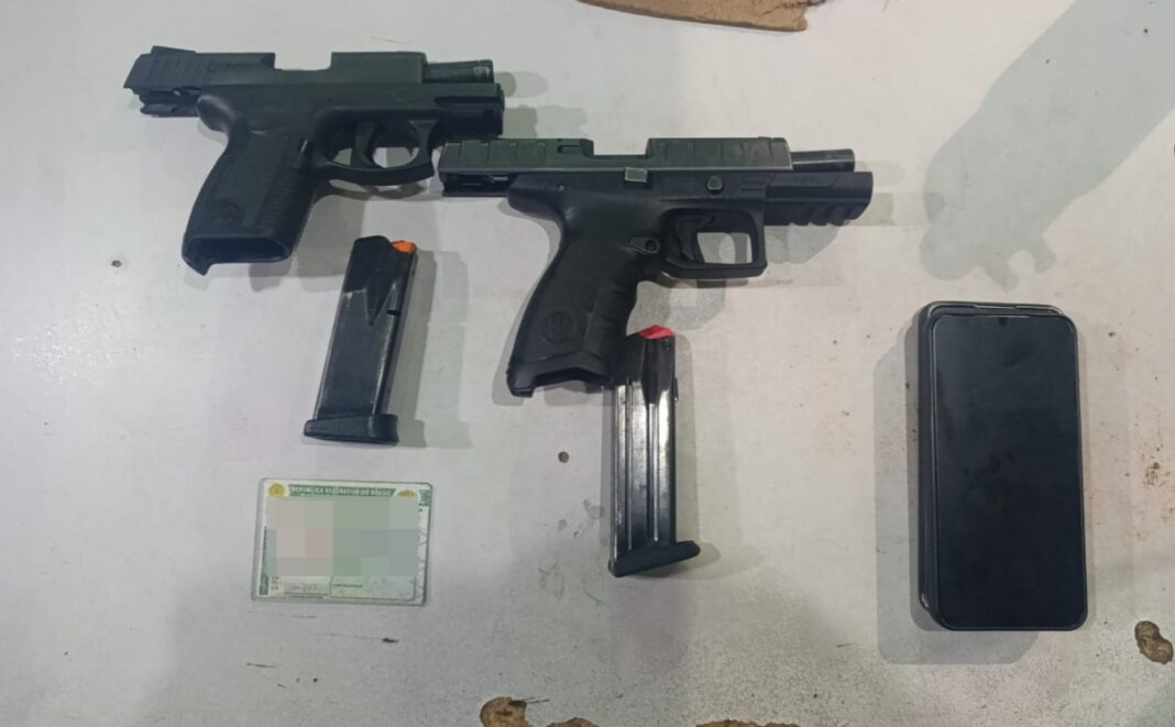 O flagrante ocorreu durante abordagem de rotina na rodovia CE-040. Dentro do automóvel, os agentes localizaram uma pistola calibre .40 e outra 9 mm, ambas sem registro.