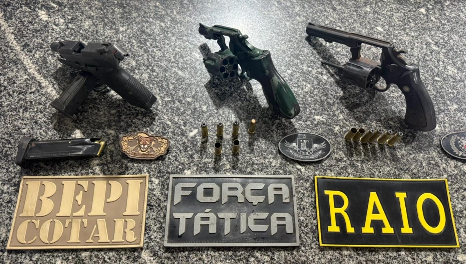 - Em resumo: três suspeitos neutralizados, duas armas calibre .38 (uma com numeração suprimida) e uma pistola calibre .380 apreendidas; dois envolvidos fugiram.