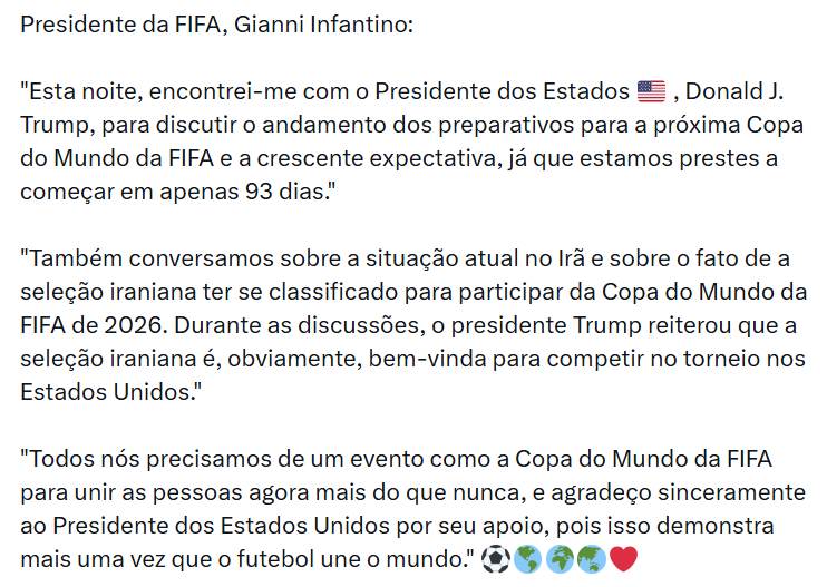 - Irã abandona Copa de 2026 e chama EUA de ‘regime corrupto’