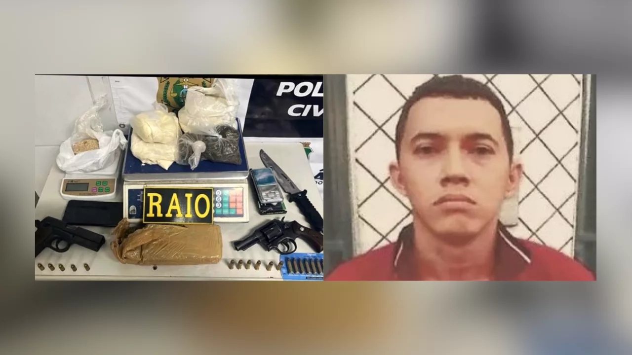 - Em resumo: Apreensão incluiu 1,570 kg de cocaína, pistola .380, revólver e R$ 7.938.
