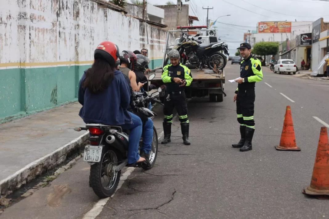 Juazeiro do Norte – Agentes do Departamento Municipal de Trânsito (Demutran) realizaram, na manhã de quinta-feira, dia 26 de fevereiro, uma blitz na Rua São Benedito, após o cruzamento com a Avenida Castelo Branco, no bairro Limoeiro. A ação resultou em 46 motocicletas abordadas e seis veículos guinchados para o pátio do Demutran até a regularização.