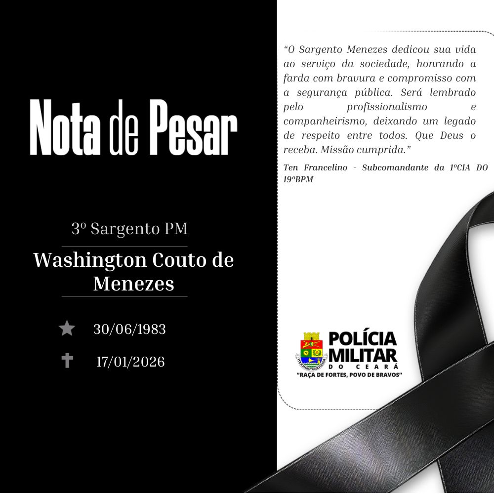 Fortaleza/CE – O falecimento do 3º Sargento PM Washington Couto de Menezes, 42 anos, ocorrido no sábado (17), abalou a Polícia Militar do Ceará e reacendeu o debate sobre a pressão cotidiana enfrentada por agentes de segurança.