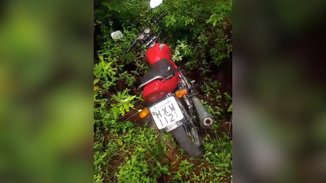 “Uma equipe do Policiamento Ostensivo Geral (POG) viu imagens de vídeo informando sobre uma moto abandonada num matagal na Rua Maria de Melo Queiroz (Campo Alegre) e foi averiguar.”