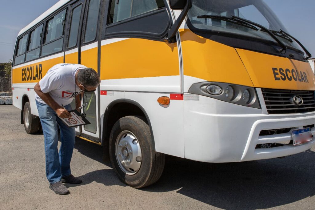 Auditores do Detran apontaram falhas que ferem a Resolução 518/2015 do Contran, responsável por definir itens mínimos de segurança para transporte escolar. Entre elas: cintos com fechos travados, ausência de extintores, portas defeituosas e pneus “carecas”.