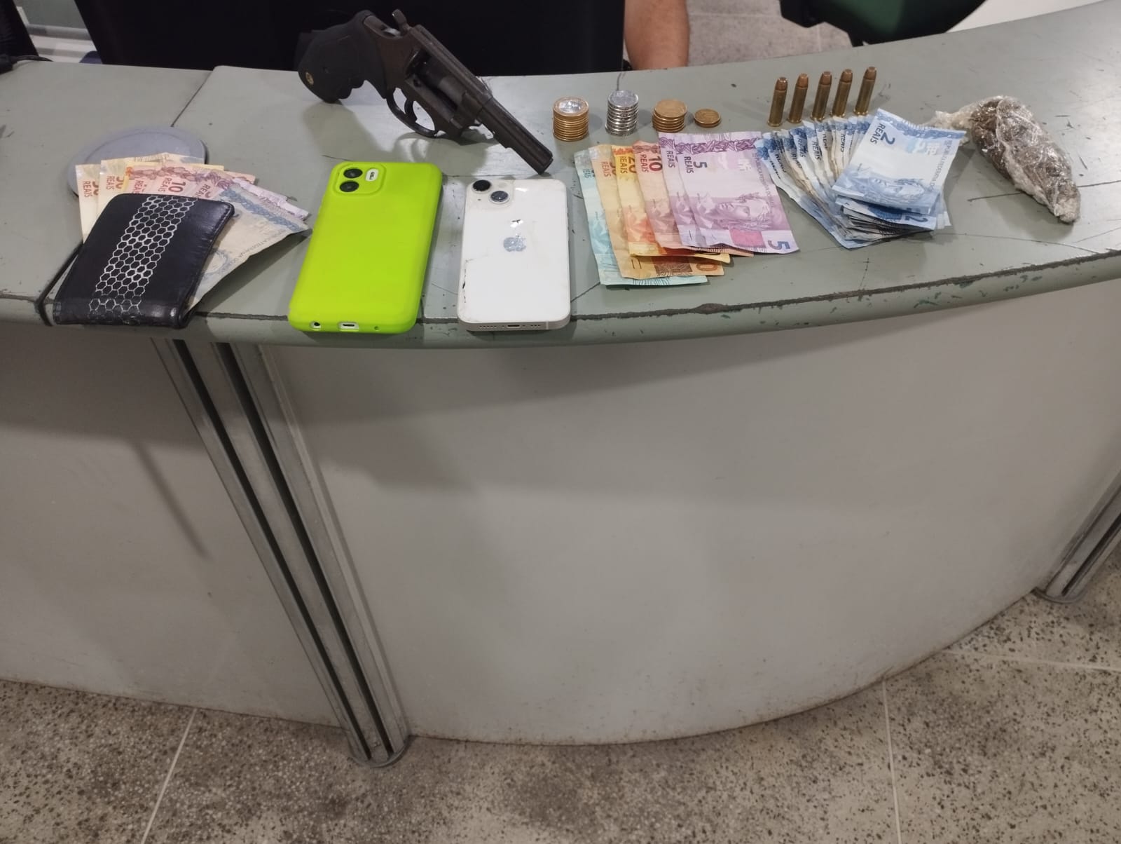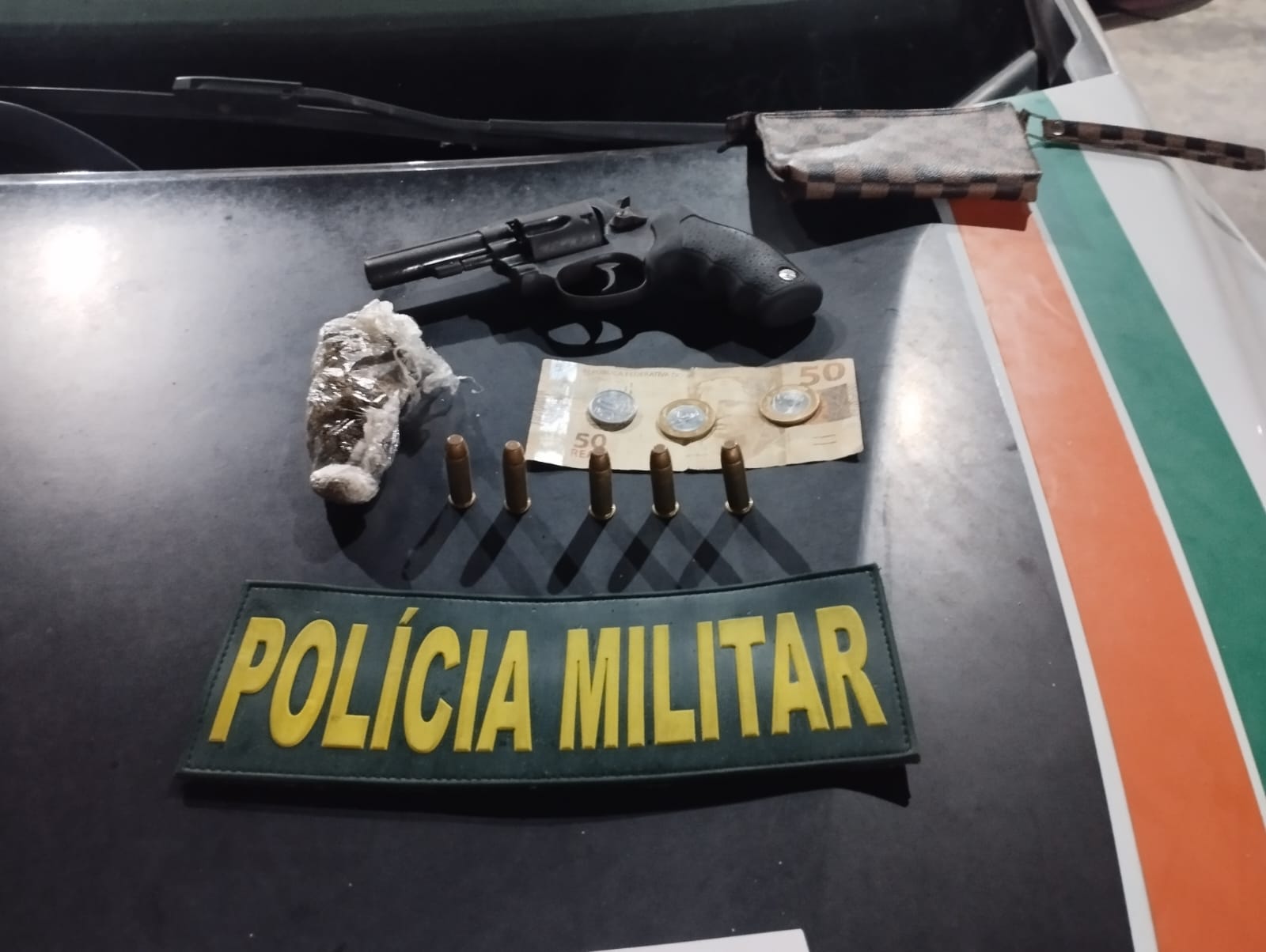 - Em resumo: revólver, munição, maconha e R$ 190,20 foram apreendidos após perseguição a pé.