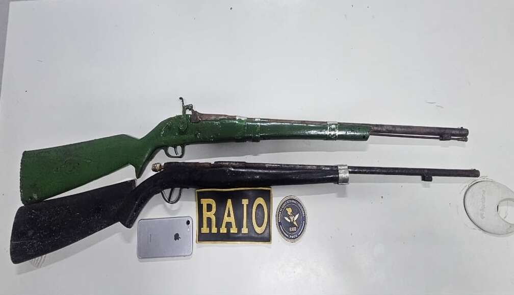 - Em resumo: duas espingardas artesanais calibre 28 e um celular foram encontrados, mas nenhum suspeito foi preso no local.
