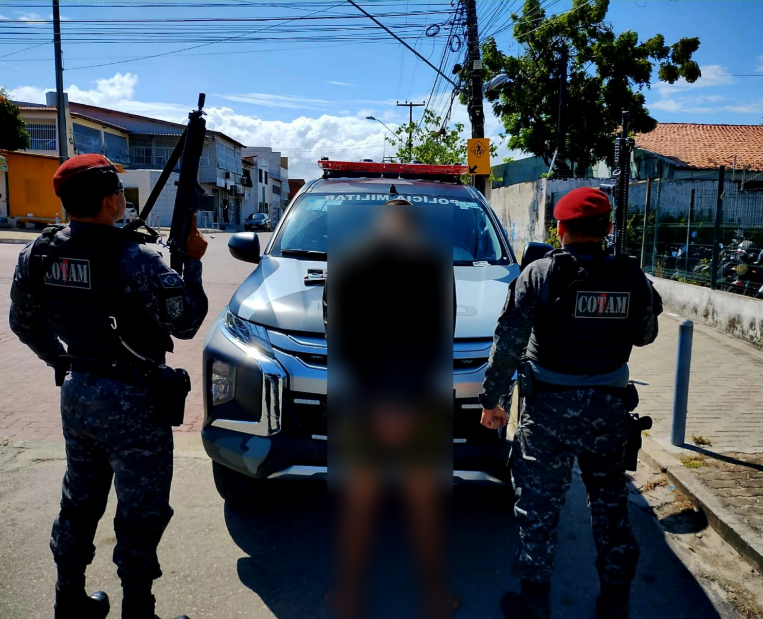 O flagrante ocorreu por volta das 13h, na Rua Jacarandá, comunidade Alto Alegre, após denúncias sobre suspeitos armados circulando na região.