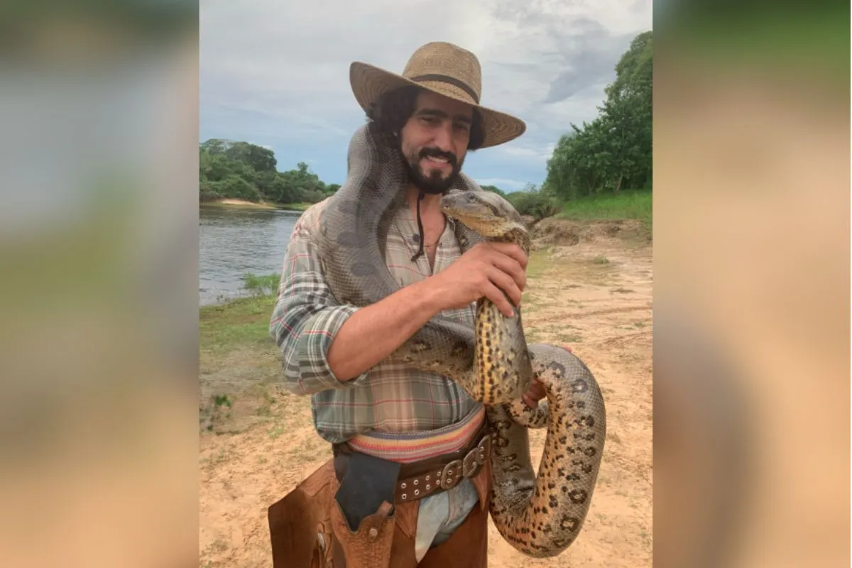 Rio de Janeiro (RJ) – O retorno de Renato Góes das férias ganhou ares de déjà-vu quando o ator e a esposa, Thaila Ayala, encontraram uma cobra gigante circulando pela sala na última terça-feira (27). O episódio acionou o Corpo de Bombeiros e reacendeu na memória do artista o dia em que ficou literalmente “enrolado” por uma sucuri durante as gravações de Pantanal, em Mato Grosso do Sul.
