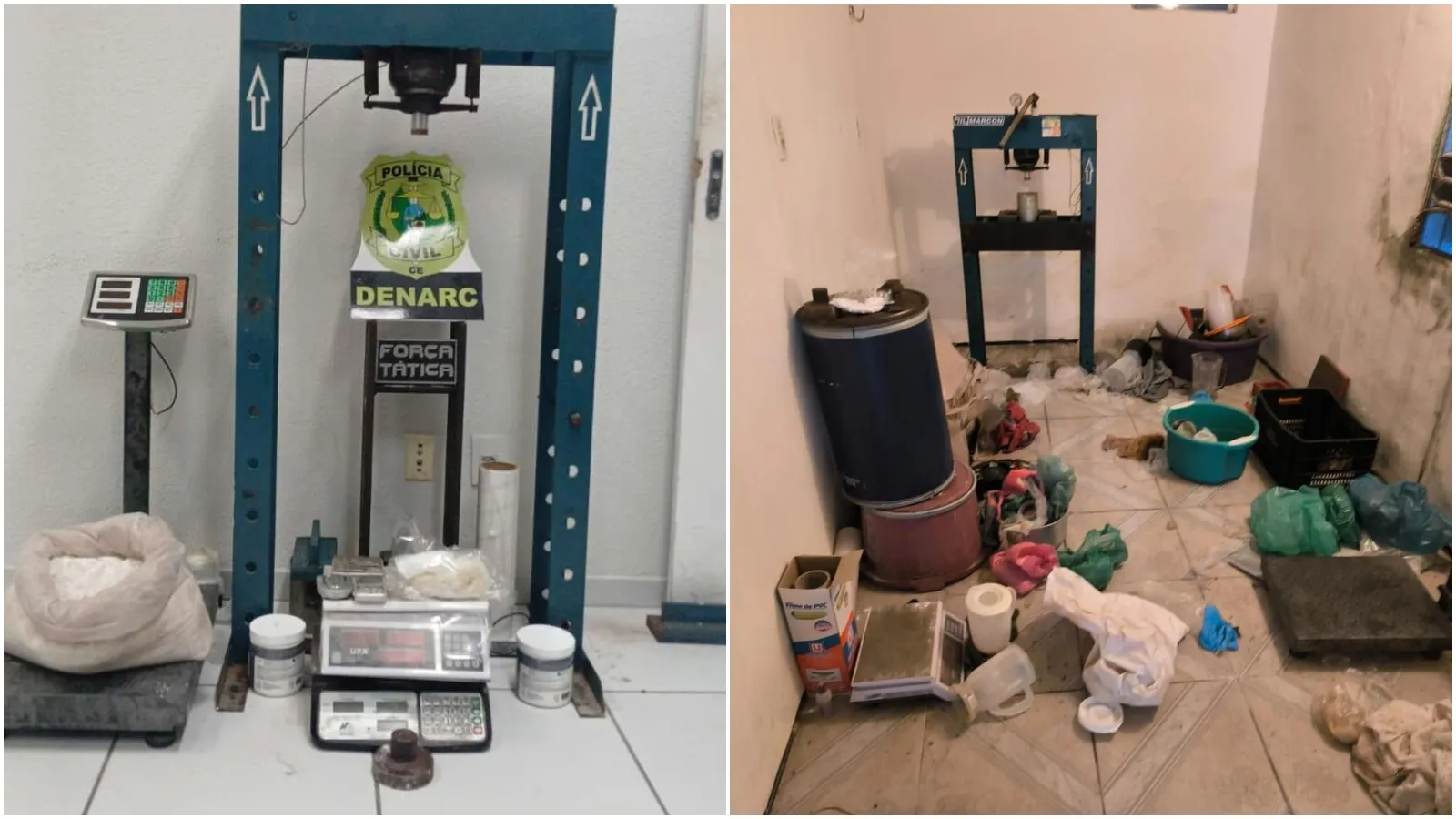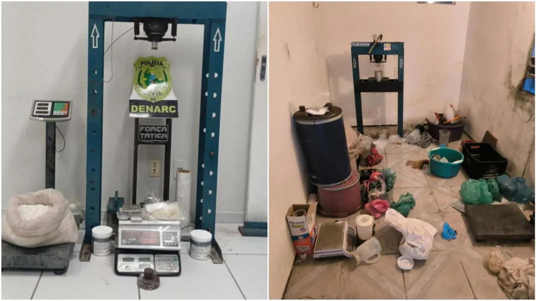 Investigadores da Delegacia de Narcóticos (Denarc) e da Coordenadoria de Inteligência (Coin) da SSPDS identificaram que a casa funcionava como laboratório. Na nova batida, foram encontrados crack, cocaína, cerca de dez quilos de pó branco, balanças de precisão e insumos para refino, reforçando os dados oficiais da SSPDS sobre a profissionalização do tráfico.