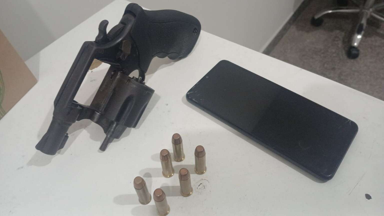 Os militares do 4º BPM patrulhavam o Centro quando receberam denúncia de um homem armado em uma motocicleta próximo à Prefeitura. A equipe localizou o suspeito, que admitiu esconder o revólver e conduziu os agentes até o imóvel onde funcionava o esquema.