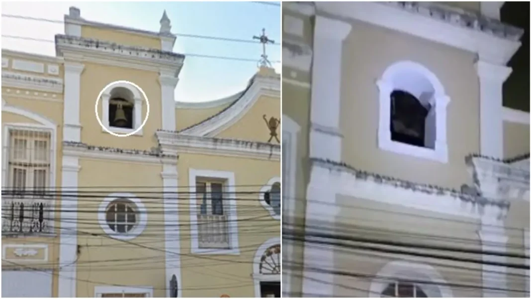 Fortaleza – A Igreja de São Bernardo, no cruzamento das ruas Senador Pompeu com Pedro Pereira, no Centro de Fortaleza, teve o sino da torre furtado na madrugada desta quinta-feira (26). Um vídeo registrado por uma testemunha mostra o nicho vazio onde o sino ficava, e fiéis e a administração da paróquia agora contabilizam prejuízos e preocupação com a segurança do patrimônio.