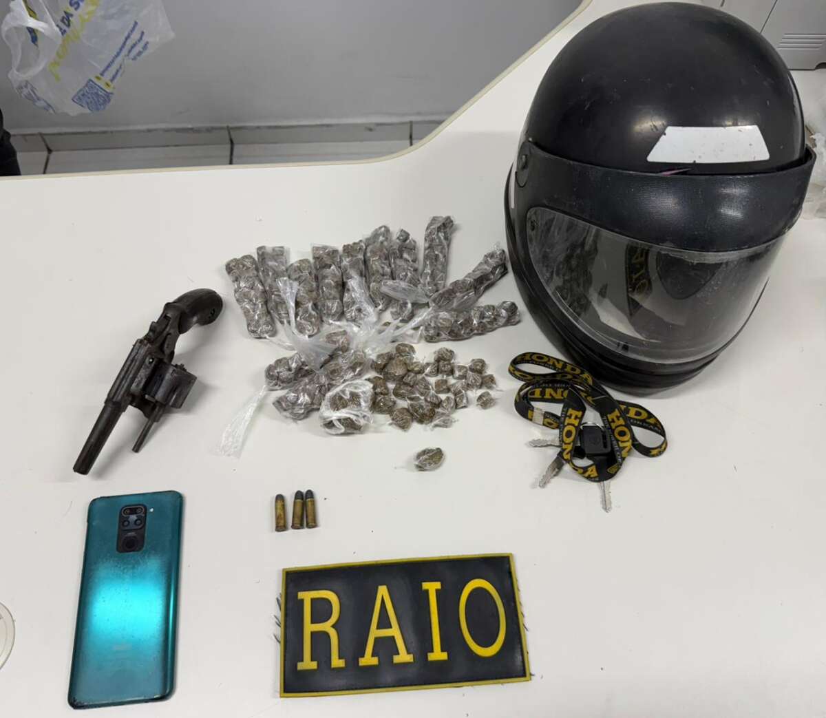 Nas buscas pelo perímetro, os militares encontraram um revólver calibre .32 com três munições e 231 gramas de maconha já fracionados em 270 pedaços – quantidade suficiente para movimentar cerca de R$ 2,7 mil, considerando o preço médio de R$ 10 por unidade em vendas de rua na região Norte do Ceará.