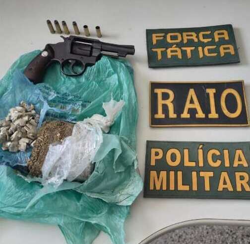 Munidos da descrição do autor, os policiais cercaram a residência de um familiar indicada pelos moradores e encontraram o suspeito, que se rendeu sem resistência. Dentro do imóvel foi localizado um revólver calibre .32 com quatro munições intactas e duas cápsulas deflagradas.