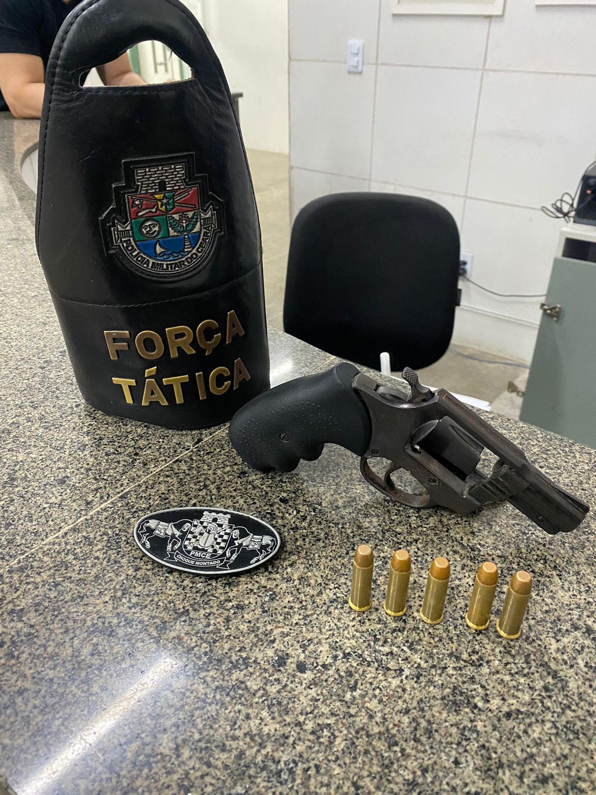 PACAJUS, CE – Uma patrulha do 25º Batalhão da Polícia Militar do Ceará (PMCE) recuperou um revólver calibre .38 com cinco munições intactas em um imóvel abandonado no bairro Croatá, na noite do último domingo (8). A ação foi desencadeada por denúncia anônima que apontava o endereço como ponto de apoio ao tráfico de drogas.