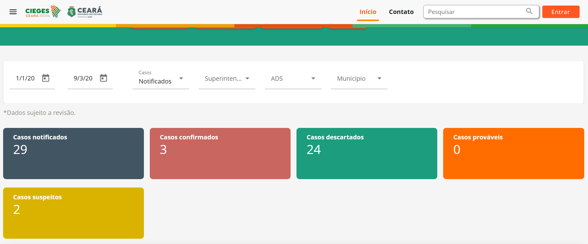 - Em resumo: Estado tem 29 notificações; três são positivas, duas seguem em investigação.