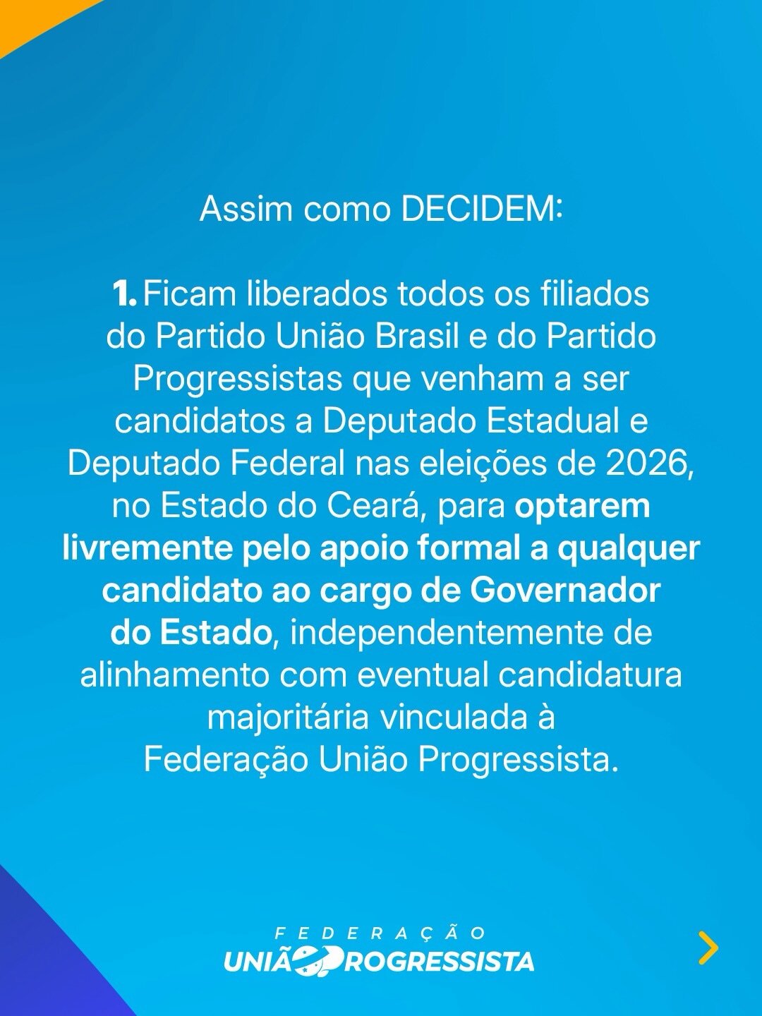 • Em resumo: filiados da federação podem declarar apoio livremente a qualquer postulante ao Governo do Ceará.